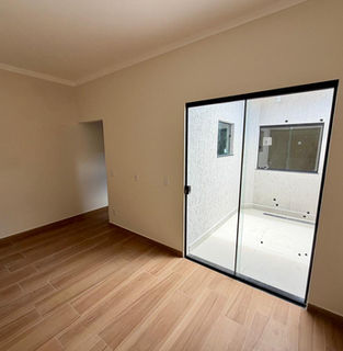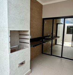 Casa moderna e confortável, 03 quartos sendo 01 suíte com área de ventilação / jardim de inverno, área gourmet com pia e churrasqueira, sala, área de serviço e garagem